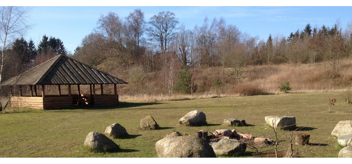Parken og derved shelteren ligger mindre end 500 m fra den nyetablerede vandre-, cykel- og ridesti fra Korinth til Ringe, der på smukkest måde, viser det midtfynske landskab fra helt nye sider.